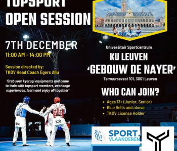 Op zondag 7 december van 11 uur tot 14 uur houdt onze topsportploeg een open training in het Universitair Sportcentrum in Leuven.